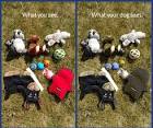 If you’ve been buying bright red toys thinking they pop out to your dog, I hate to break it to ya, but those toys might actually look pretty dull to them! Here’s a breakdown of how different colors appear to dogs: