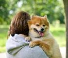 - Lift slowly and carefully to your feet, keeping the dog close to your body