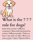 The 7-7-7 rule is a puppy socialization guideline recommending that by seven weeks of age, a puppy should have encountered seven different people, experienced seven different locations, and encountered seven different surfaces to promote confidence and prevent fear. It also suggests seven different toys, seven brief car rides, seven crate experiences, and seven gentle challenges to build a positive foundation for a well-adjusted adult dog.